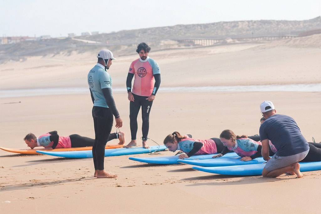 Learn to surf with a local crew on Portugal’s Silver Coast. We keep groups small (max 5 surfers per coach) and use video analysis to help you progress fast. Choose 3, 5 or 8 days, and we’ll handle the logistics—gear, transport, insurance and breakfast—so you can focus on the ocean.